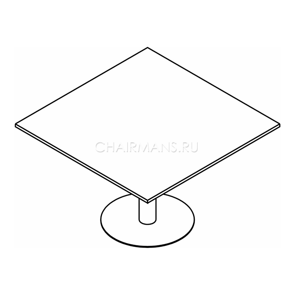 Столешница из ЛДСП толщиной 22 мм с кромкой ПВХ толщиной 2 мм. Опора металлическая с круглым основанием, диаметр трубы 108 мм , диаметр основания 600 мм. Опора не регулируемая.