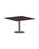 Столешница из ЛДСП толщиной 22 мм с кромкой ПВХ толщиной 2 мм. Опора металлическая с круглым основанием, диаметр трубы 108 мм , диаметр основания 600 мм. Опора не регулируемая.