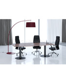 Столешница из ЛДСП толщиной 22 мм с кромкой ПВХ толщиной 2 мм. Опоры металлические с круглым основанием, диаметр трубы 108 мм , диаметр основания 600 мм. Прямоугольная заглушка в центре столешницы. Опоры не регулируемые.