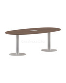 Столешница из ЛДСП толщиной 22 мм с кромкой ПВХ толщиной 2 мм. Опоры металлические с круглым основанием, диаметр трубы 108 мм , диаметр основания 600 мм. Прямоугольная заглушка в центре столешницы. Опоры не регулируемые.