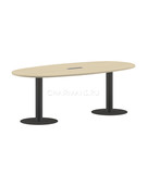 Столешница из ЛДСП толщиной 22 мм с кромкой ПВХ толщиной 2 мм. Опоры металлические с круглым основанием, диаметр трубы 108 мм , диаметр основания 600 мм. Прямоугольная заглушка в центре столешницы. Опоры не регулируемые.