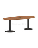 Столешница из ЛДСП толщиной 22 мм с кромкой ПВХ толщиной 2 мм. Опоры металлические с круглым основанием, диаметр трубы 108 мм , диаметр основания 600 мм. Прямоугольная заглушка в центре столешницы. Опоры не регулируемые.