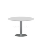 Столешница из ЛДСП толщиной 22 мм с кромкой ПВХ толщиной 2 мм. Опора металлическая с круглым основанием, диаметр трубы 108 мм , диаметр основания 600 мм. Опора не регулируемая.