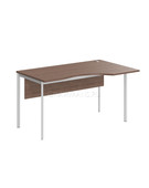 Столешница из ЛДСП т.22мм. Металлокаркас из трубы 40х20х1,5мм. без регулировки внизу. Опоры столов комплектуются пластиковой заглушкой. Покрытие краска белая полуматовая или алюминий. Металлокаркас соединяется со столешницей через металлическую проставку D-16мм. H-6мм. Комплектуется фронтальной панелью из ЛДСП т. 18мм. крепится к столешнице при помощи уголков.