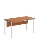 Столешница из ЛДСП т.22мм. Металлокаркас из трубы 40х20х1,5мм. без регулировки внизу. Опоры столов комплектуются пластиковой заглушкой. Покрытие краска белая полуматовая или алюминий. Металлокаркас соединяется со столешницей через металлическую проставку D-16мм. H-6мм. Комплектуется фронтальной панелью из ЛДСП т. 18мм. крепится к столешнице при помощи уголков.