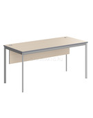 Столешница из ЛДСП т.22мм. Металлокаркас из трубы 40х20х1,5мм, без регулировки внизу. Опоры столов комплектуются пластиковой заглушкой. Покрытие краска белая полуматовая или алюминий. Металлокаркас соединяется со столешницей через металлическую проставку D-16мм. H-6мм. Комплектуется фронтальной панелью из ЛДСП т. 18мм. крепится к столешнице при помощи уголков.