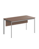 Столешница из ЛДСП т.22мм. Металлокаркас из трубы 40х20х1,5мм, без регулировки внизу. Опоры столов комплектуются пластиковой заглушкой. Покрытие краска белая полуматовая или алюминий. Металлокаркас соединяется со столешницей через металлическую проставку D-16мм. H-6мм. Комплектуется фронтальной панелью из ЛДСП т. 18мм. крепится к столешнице при помощи уголков.