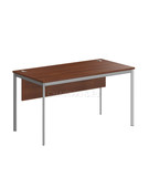 Столешница из ЛДСП т.22мм. Металлокаркас из трубы 40х20х1,5мм, без регулировки внизу. Опоры столов комплектуются пластиковой заглушкой. Покрытие краска белая полуматовая или алюминий. Металлокаркас соединяется со столешницей через металлическую проставку D-16мм. H-6мм. Комплектуется фронтальной панелью из ЛДСП т. 18мм. крепится к столешнице при помощи уголков.