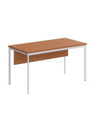 Столешница из ЛДСП т.22мм. Металлокаркас из трубы 40х20х1,5мм, без регулировки внизу. Опоры столов комплектуются пластиковой заглушкой. Покрытие краска белая полуматовая или алюминий. Металлокаркас соединяется со столешницей через металлическую проставку D-16мм. H-6мм. Комплектуется фронтальной панелью из ЛДСП т. 18мм. крепится к столешнице при помощи уголков.