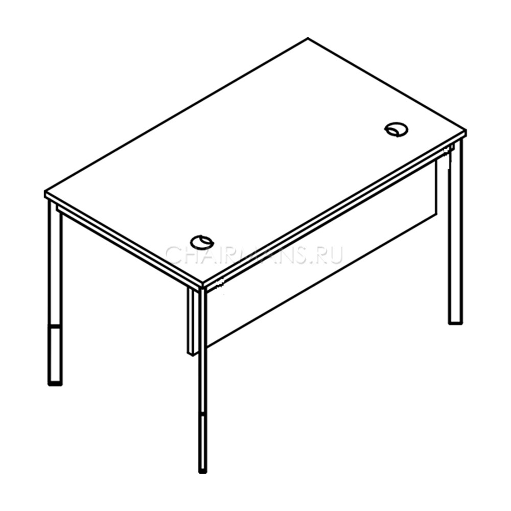 Столешница из ЛДСП т.22мм. Металлокаркас из трубы 40х20х1,5мм, без регулировки внизу. Опоры столов комплектуются пластиковой заглушкой. Покрытие краска белая полуматовая или алюминий. Металлокаркас соединяется со столешницей через металлическую проставку D-16мм. H-6мм. Комплектуется фронтальной панелью из ЛДСП т. 18мм. крепится к столешнице при помощи уголков.
