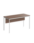 Столешница из ЛДСП т.22мм. Металлокаркас из трубы 40х20х1,5мм, без регулировки внизу. Опоры столов комплектуются пластиковой заглушкой. Покрытие краска белая полуматовая или алюминий. Металлокаркас соединяется со столешницей через металлическую проставку D-16мм. H-6мм. Комплектуется фронтальной панелью из ЛДСП т. 18мм. крепится к столешнице при помощи уголков.