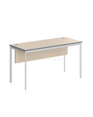 Столешница из ЛДСП т.22мм. Металлокаркас из трубы 40х20х1,5мм, без регулировки внизу. Опоры столов комплектуются пластиковой заглушкой. Покрытие краска белая полуматовая или алюминий. Металлокаркас соединяется со столешницей через металлическую проставку D-16мм. H-6мм. Комплектуется фронтальной панелью из ЛДСП т. 18мм. крепится к столешнице при помощи уголков.