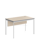 Столешница из ЛДСП т.22мм. Металлокаркас из трубы 40х20х1,5мм, без регулировки внизу. Опоры столов комплектуются пластиковой заглушкой. Покрытие краска белая полуматовая или алюминий. Металлокаркас соединяется со столешницей через металлическую проставку D-16мм. H-6мм. Комплектуется фронтальной панелью из ЛДСП т. 18мм. крепится к столешнице при помощи уголков.