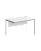 Столешница из ЛДСП т.22мм. Металлокаркас из трубы 40х20х1,5мм, без регулировки внизу. Опоры столов комплектуются пластиковой заглушкой. Покрытие краска белая полуматовая или алюминий. Металлокаркас соединяется со столешницей через металлическую проставку D-16мм. H-6мм. Комплектуется фронтальной панелью из ЛДСП т. 18мм. крепится к столешнице при помощи уголков.