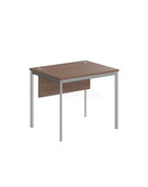 Столешница из ЛДСП т.22мм. Металлокаркас из трубы 40х20х1,5мм, без регулировки внизу. Опоры столов комплектуются пластиковой заглушкой. Покрытие краска белая полуматовая или алюминий. Металлокаркас соединяется со столешницей через металлическую проставку D-16мм. H-6мм. Комплектуется фронтальной панелью из ЛДСП т. 18мм. крепится к столешнице при помощи уголков.