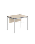 Столешница из ЛДСП т.22мм. Металлокаркас из трубы 40х20х1,5мм, без регулировки внизу. Опоры столов комплектуются пластиковой заглушкой. Покрытие краска белая полуматовая или алюминий. Металлокаркас соединяется со столешницей через металлическую проставку D-16мм. H-6мм. Комплектуется фронтальной панелью из ЛДСП т. 18мм. крепится к столешнице при помощи уголков.