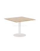Столешница выполнена из МДФ т.19мм с фрезеровкой, покрытие - пленка ПВХ. Опора металлическая с круглым основанием, диаметр трубы 108мм , диаметр основания 600мм.