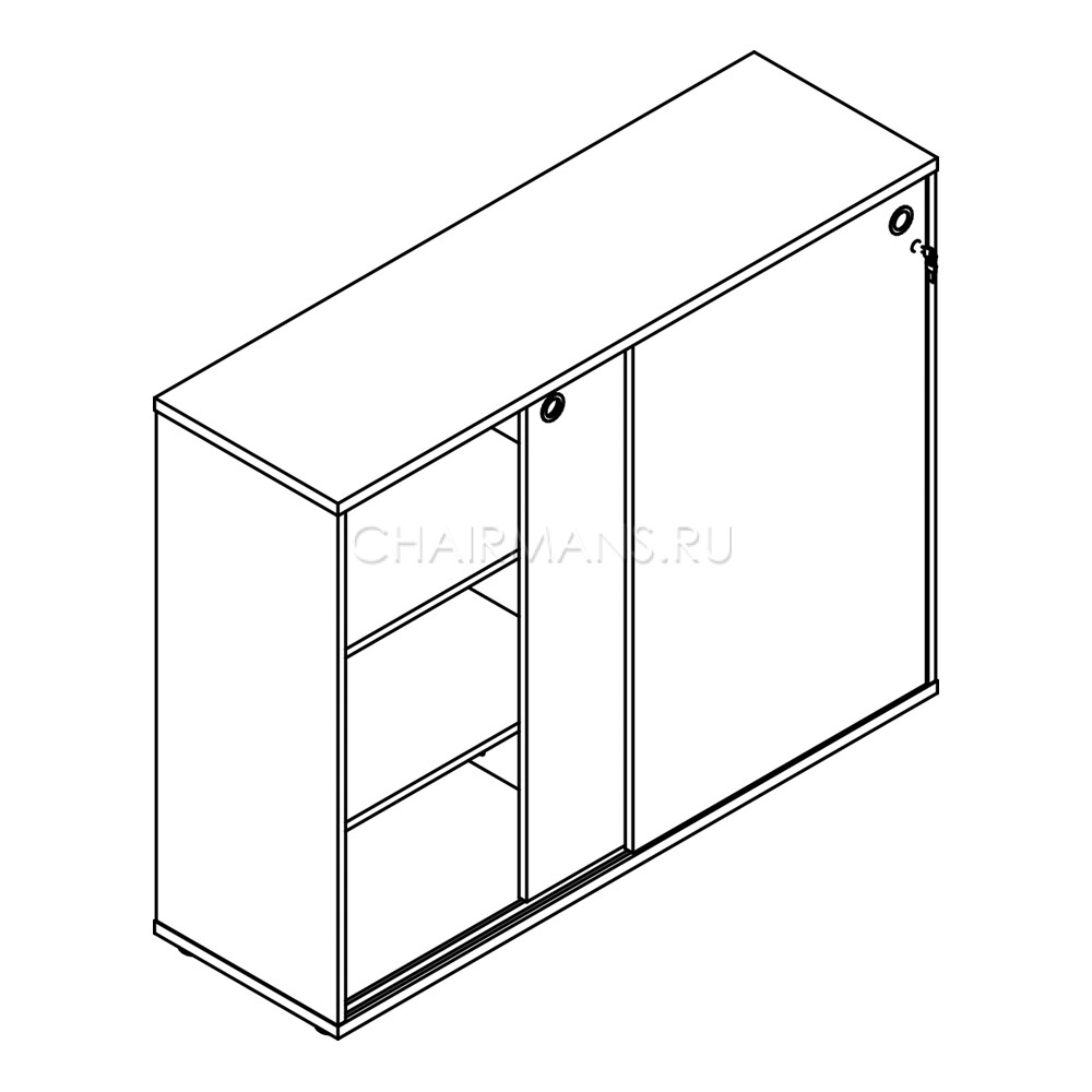 Каркас из ЛДСП толщиной 18 и 25 мм., задняя стенка из ЛДСП толщиной 18 мм. Каркас комплектуется полками. Слайд-двери с замком, ручки врезные.