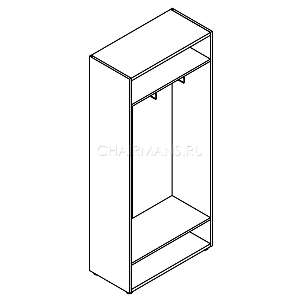 Каркас гардероба из ЛДСП т.18 мм. Задняя стенка из ХДФ толщиной 3,2 мм. Каркас комплектуется 2-мя выдвижными штангами. Внимание! Возможно приобрести с задней стенкой из ЛДСП толщиной 18 мм. (артикул XСWS 85-1).