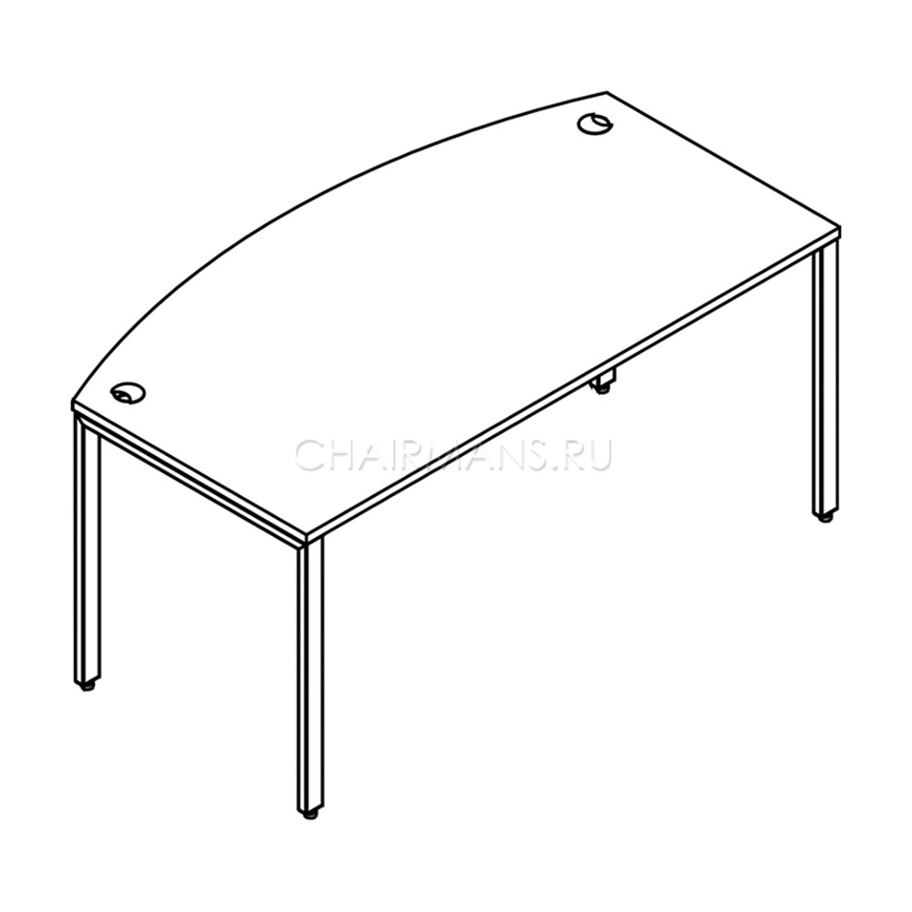 Столешница из ЛДСП толщиной 25 мм c кромкой ПВХ толщиной 2 мм. Опоры металлокаркаса П-образной формы из полированной нержавеющей стали, труба 50х25х2 мм с регулировкой внизу. Столешница комплектуется двумя траверсами, окрашенными порошковой краской.