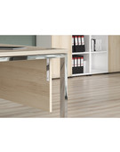 Столешница из ЛДСП толщиной 25 мм c кромкой ПВХ толщиной 2 мм. Опоры металлокаркаса П-образной формы из полированной нержавеющей стали, труба 50х25х2 мм с регулировкой внизу. Комплектуется одной траверсой, окрашенной порошковой краской.
