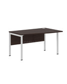 Столешница из ЛДСП т.25мм., кромка ПВХ т. 2мм., фронтальная панель из ЛДСП т. 18 мм., опоры - металлокаркас из трубы 50х25, цвет серебро. Стол комплектуется одной заглушкой.
