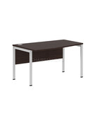 Столешница из ЛДСП т.25мм., кромка ПВХ т. 2мм., фронтальная панель из ЛДСП т. 18 мм., опоры - металлокаркас из трубы 50х25, цвет серебро. Стол комплектуется одной заглушкой.